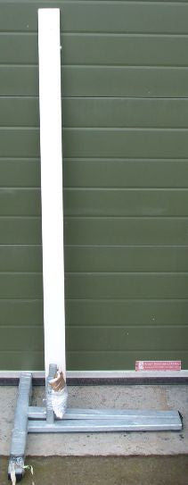 Pair of white posts to indicate the finish line in races. Available with either steel sockets, or on freestanding bases. Made to order, please allo...
