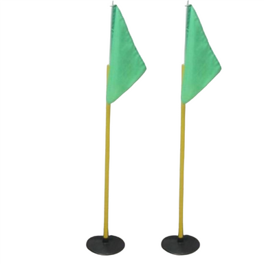 Pair of green flags freestanding which slot into a GRP posts and heavy rubber base.